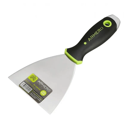 Шпатель-скребок ARMERO — это прямой инструмент шириной 100 мм, изготовленный из нержавеющей стали. Он оснащён деревянной рукояткой из бука.