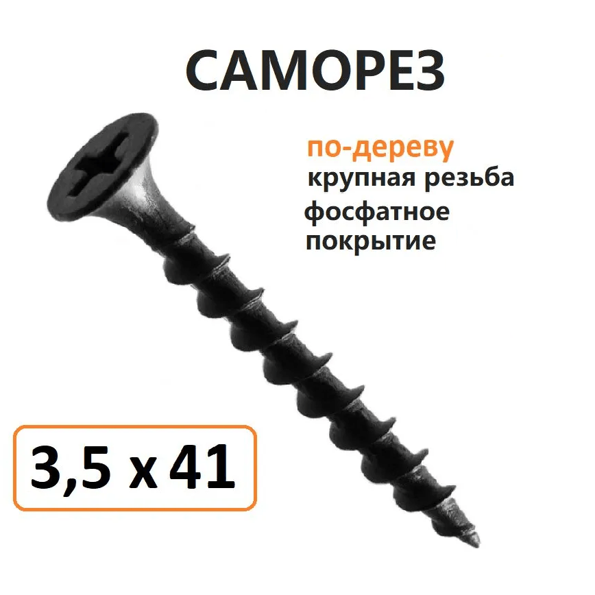 Саморез «гипсокартон-дерево» размером 3,5 × 41 в количестве 6500 штук — это крепёжный элемент с частой резьбой, предназначенный для соединения деревянных элементов с гипсокартоном.