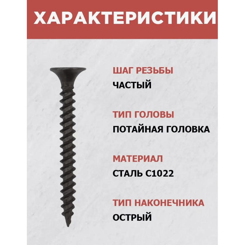 Саморез «гипс/металл» 3,5×35 мм в количестве 1000 штук — это крепёжное изделие с частой резьбой и крестообразным шлицем. Оно предназначено для соединения металлических профилей с гипсокартоном без предварительного сверления.