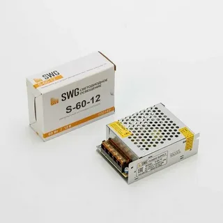 Блок питания SWG мощностью 60 Вт и напряжением 12 В предназначен для светодиодных лент и другого оборудования, работающего от постоянного напряжения 12 В. Он имеет сверхтонкий дизайн и компактные размеры, что позволяет легко установить его в различных местах. Его артикул — S-60-12.