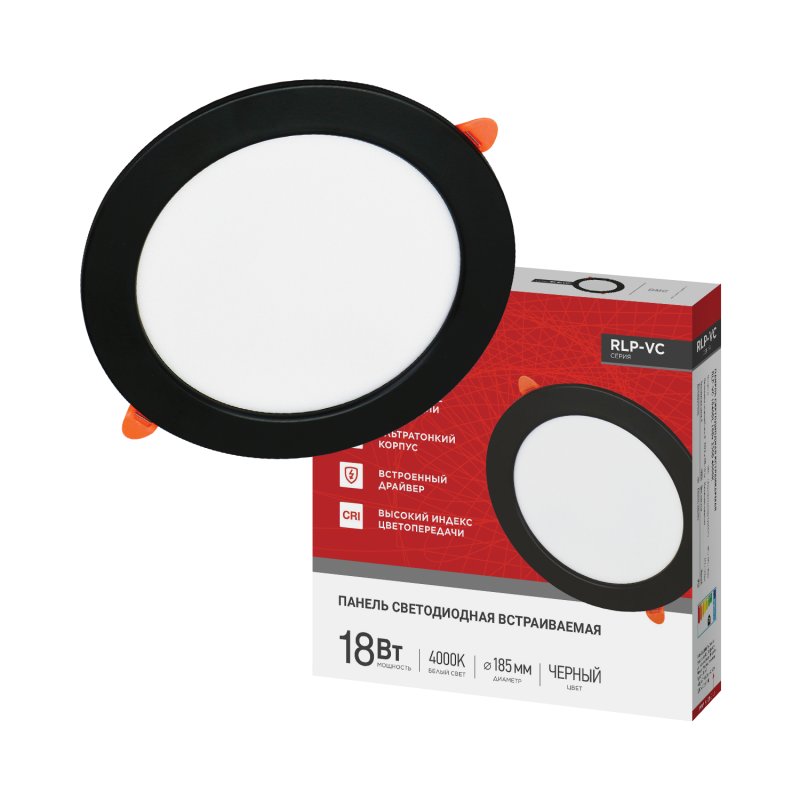Панель светодиодная круглая RLP-VC 1840BL 18Вт 230В 4000К 1440Лм 185мм(d150) ЧЕРНАЯ IP40 IN HOME