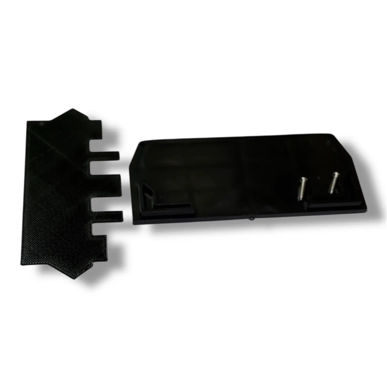 Комплект черных торцевых заглушек состоит из двух внешних элементов и двух внутренних. Внешний элемент крепится к профилю с помощью финишных гвоздей. Внутренняя часть приклеивается с внутренней стороны карниза и придают всей конструкции завершенный эстетический вид.