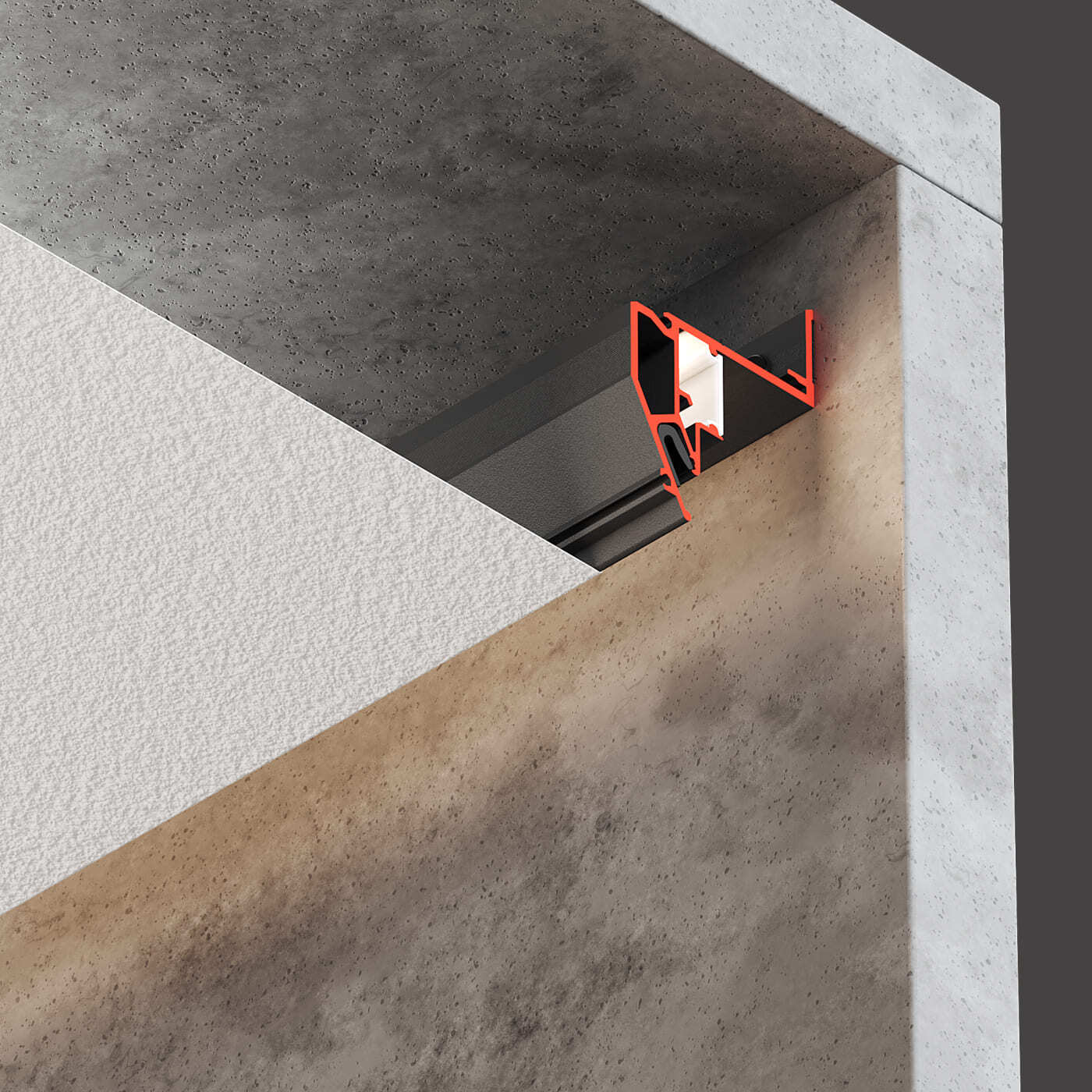 Конструкционный парящий профиль для натяжных потолков с гарпунной системой крепления полотна. С пазом для светодиодной ленты и креплением для экрана.