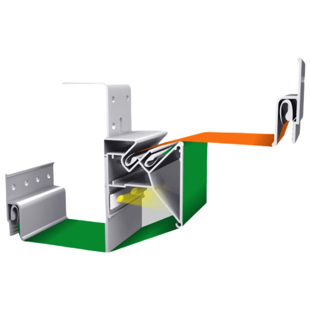 Профиль ПФ-1608 "Контурно-бесщелевой" используется для изготовления двухуровневых и многоуровневых конструкций для натяжных потолков с использованием LED подсветки. В данном профиле есть возможность изменять угол наклона с помощью бандажной ленты, которая крепится на задней стенке профиля. Очень часто используется для изготовления светильников, благодаря изменению угла наклона подсветки.