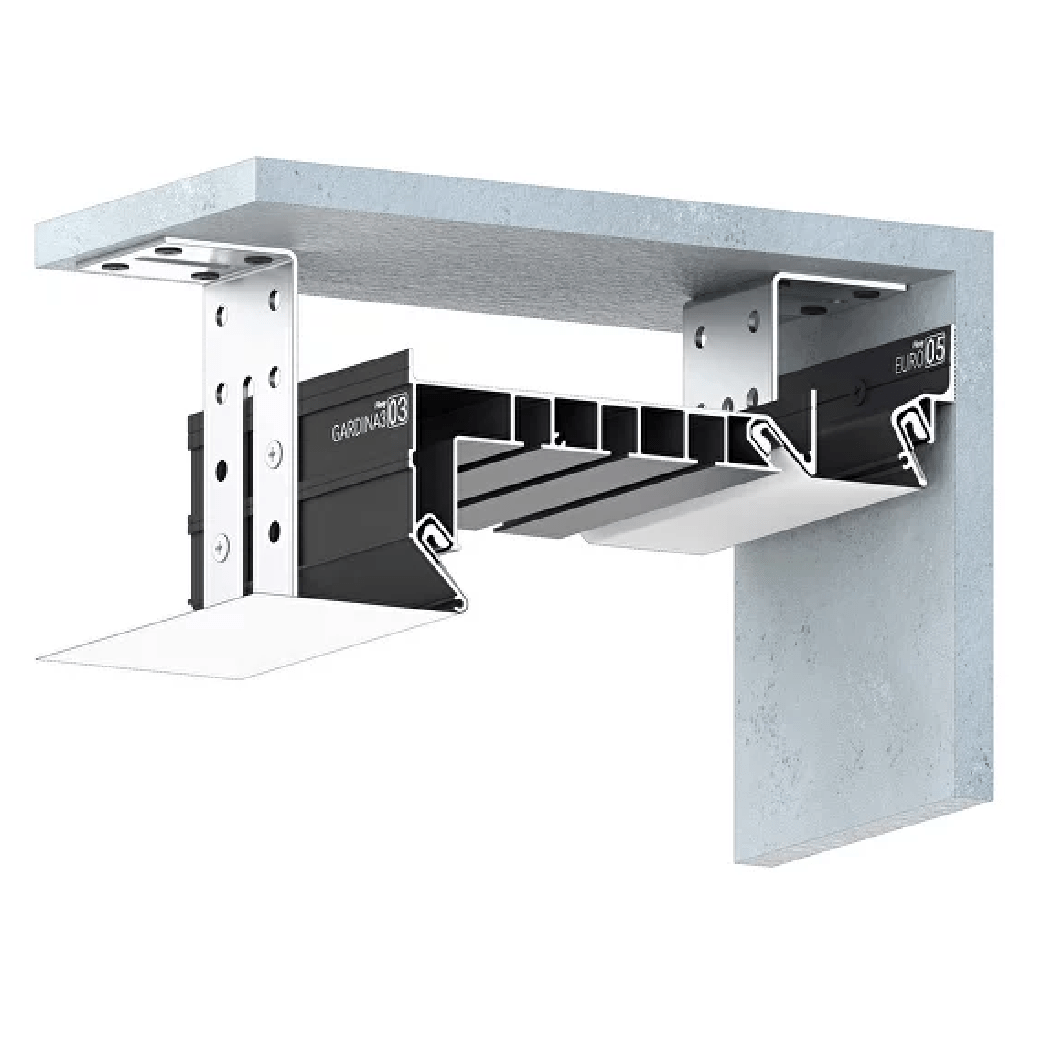 Профиль Flexy GARDINA3 03 для изготовления скрытых карнизных ниш с тремя пазами для установки штор и гардин. Для гарпунной системы крепления полотна с боковой заправкой.