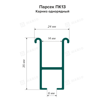 Карниз однорядный, 3,2м, белый матовый ПАРСЕК ПК-13/1